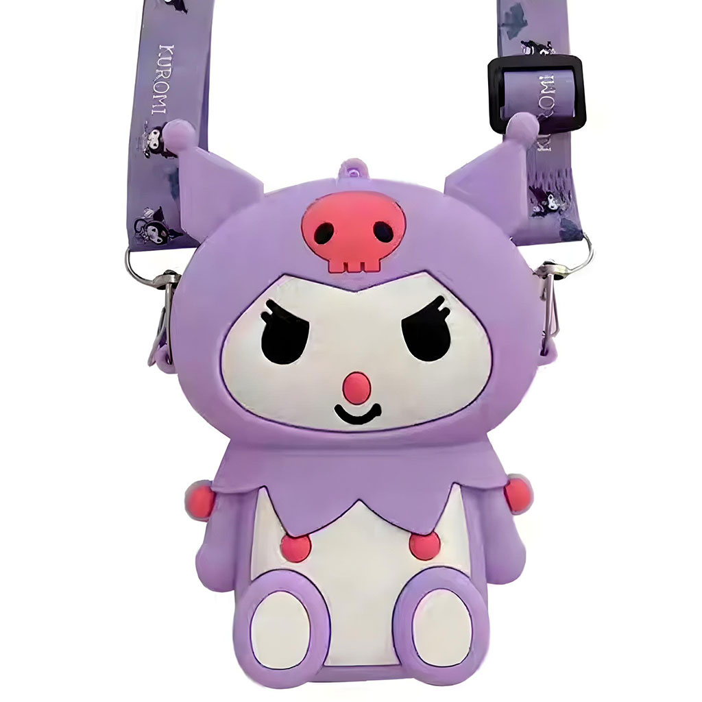 Design adorable en forme de Kuromi, avec détails en reliefMatériau souple et résistant, agréable au toucherLanière assortie avec illustrations de KuromiFermeture sécurisée, parfait pour les sorties ou comme accessoire de mode